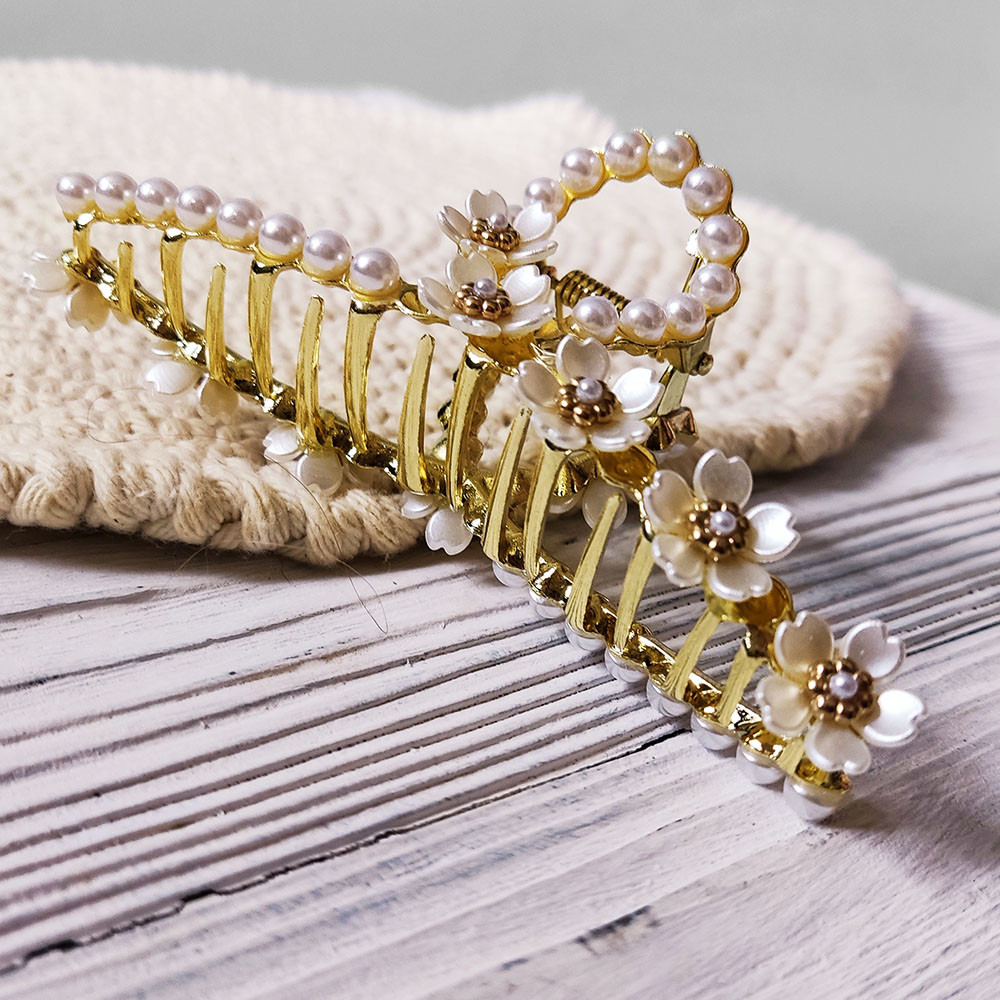 Металева шпилька для волосся крабик «Перлинна квітка»